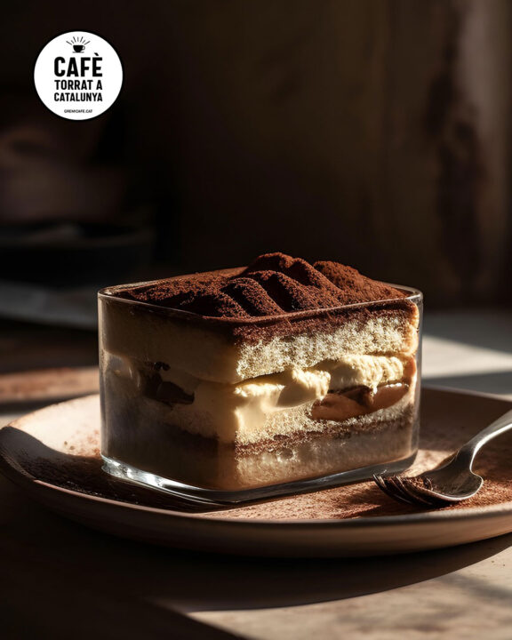 El tiramisú (nombre que proviene de la expresión italiana que significa tentempié) es un postre de cuchara frío de origen burgués y aristocrático italiano. Consta de una base de bizcocho, emborrachada con café y vino rancio, cubierta de una crema hecha con una base de mascarpone y decorada con cacao en polvo en su superficie. Esta tarta se sirve en una bandeja rectangular grande, aunque últimamente hay una moda consistente en presentarlo en vatitos transparentes individuales.